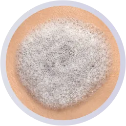 一定温度で揮発する成分が肌と接触することで洗浄成分を泡立て、汚れを浮かせて落としやすくします。